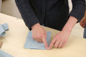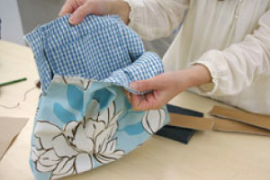 まずは型紙を起こします。お教室で起こした型紙は持ち帰れますので、作り方を覚えて帰れば違う生地でも作れちゃいます。