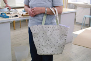 出来上がったバッグを見せ合ったり、褒めあったり。何だか「家庭科教室」を思い出してしまいました。