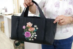 一緒に受講していた方々も次々と完成。こちらの方はご自分で刺しゅうなさった生地をバッグに仕立てられていました。ステキ。