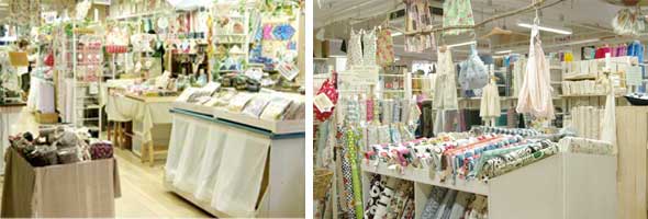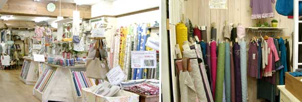 ご満足いただけるよう豊富な種類のコットン生地があります。 1000円お買い上げごとに一枚差し上げている寸法図のお渡し場所もこのフロアです。 |
